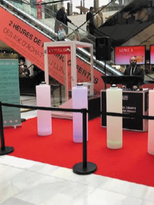 Nos équipes mettent en place une piscine à balles dans l’un des espaces disponibles de votre centre commercial. Une hôtesse place une boule dorée entre les nombreuses boules blanches et bleues. Elle invite vos clients à plonger afin de retrouver la boule tant convoitée. Le client qui la trouvera gagnera le gros lot !